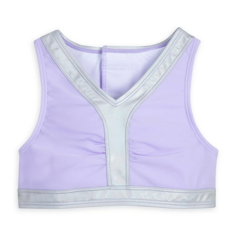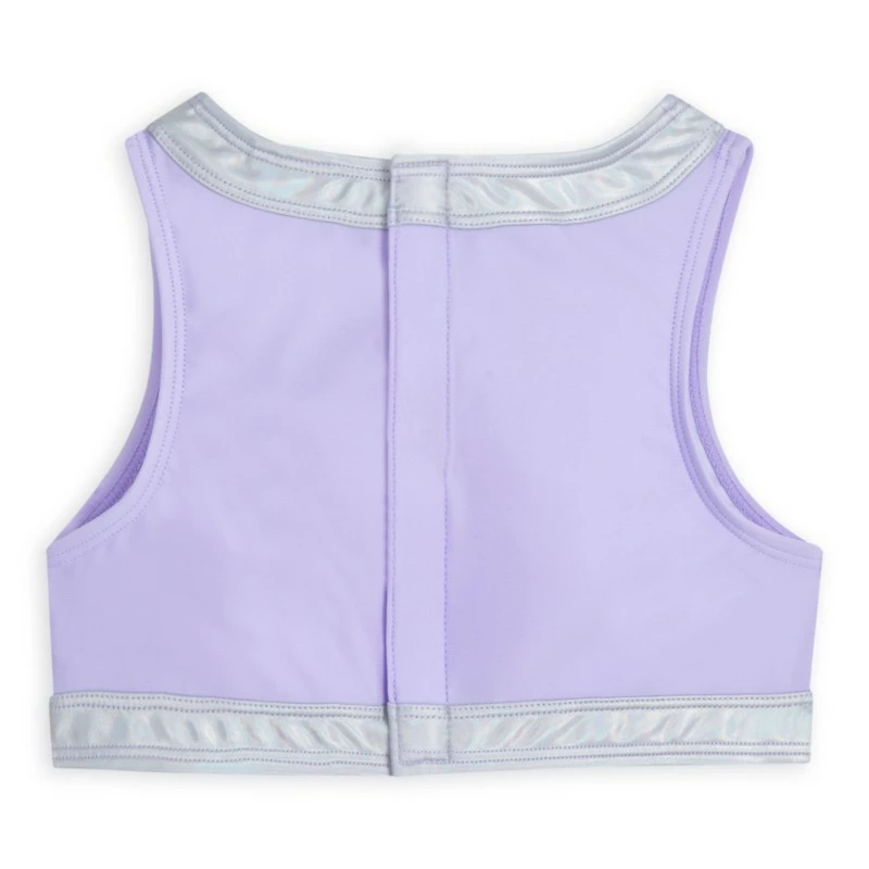 The water is so much more fun when you’re a mermaid. This three-piece Ariel adaptive swim set features a two-piece swimsuit and long mermaid skirt, all with self-stick fabric closures for ease of use. Inspired by Disney’s The Little Mermaid, the set shimmers with pretty details like an allover metallic print on the bottom and skirt, pretty silvery trim on the top and an organza fishtail hem on the skirt. Let the splashy fun begin.