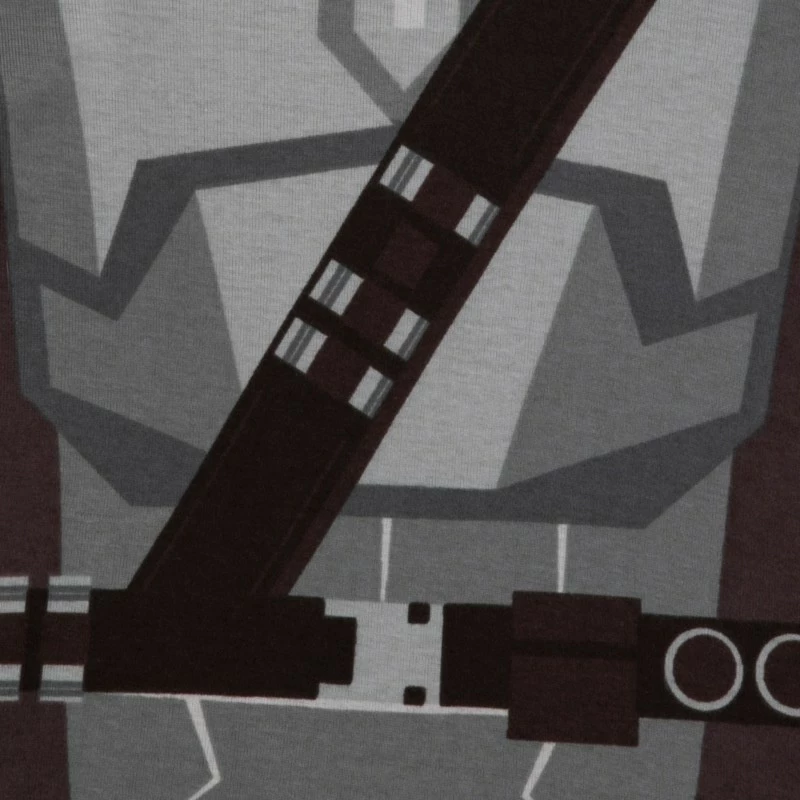Their dream will be well protected when wearing this all-cotton Star Wars pyjamas set featuring long sleeve top and matching pants with allover Mandalorian costume print.
