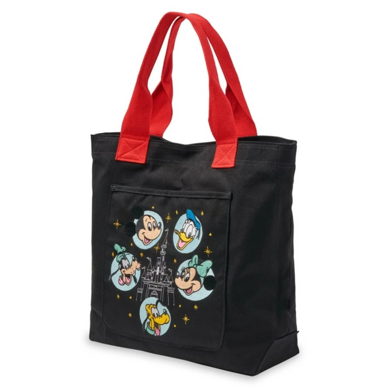 Carry around happy thoughts of the Disney Parks while in the company of Mickey and his friends with this fun tote. Minnie, Goofy, Donald and Pluto join Mickey in the embroidered design on the front of this study cotton canvas bag that includes the Fantasyland Castle.