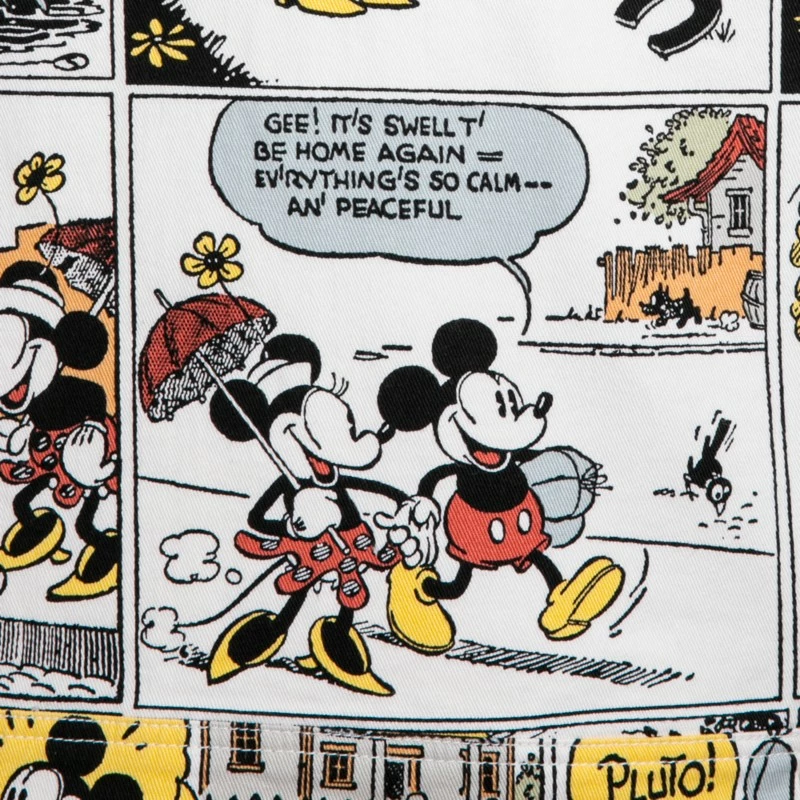 - Vintage-style allover dyed print of Mickey Mouse comics