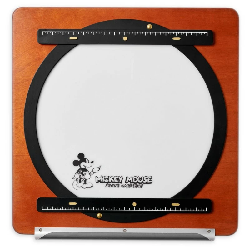 Make a nifty note to yourself or others on this light-up memo board in the form of the disc from a traditional animator’s drawing desk as found at the Walt Disney Studios. Use a dry-erase marker (not included) to make your statement–or draw a cartoon! Wipe and begin again. Features classic Mickey illustration.
