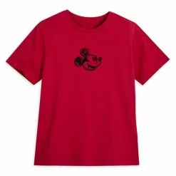 Add some super swell style to your wardrobe. A sketched design of Mickey Mouse is featured on this bright red cotton jersey t-shirt.