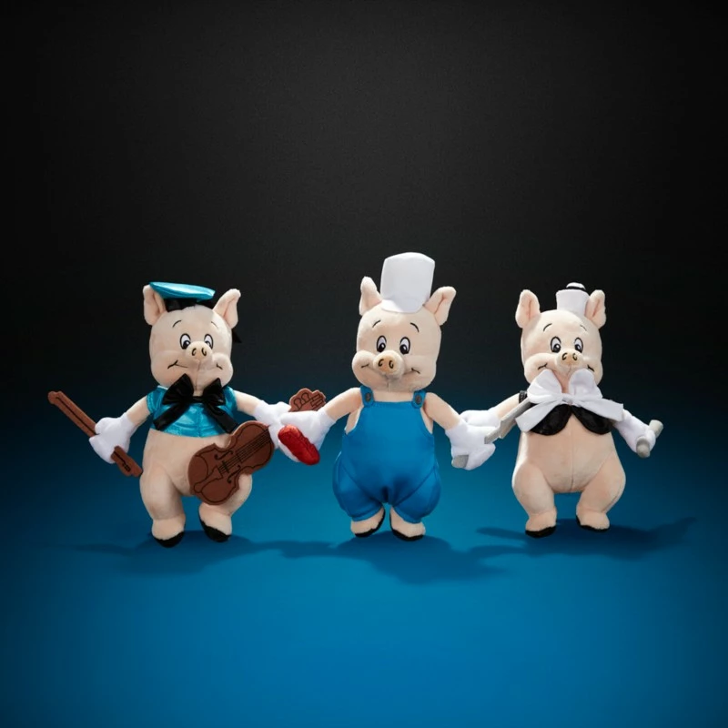 Celebrate 100 years of Disney animation storytelling with this porcine plush trio inspired by Walt Disney’s classic Silly Symphony, The Three Little Pigs. Fiddler Pig, Fifer Pig and Practical Pig are not afraid to seek refuge on the collectible shelf at your house, whether it’s made of sticks or bricks. Don’t blow it by missing out!